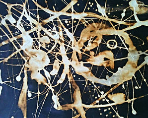 Using a technique by painting black ink onto a sheet of paper and then painting over the top with bleach, these golden patterns and lines were formed to represent the lines and patterns created on frozen ice.